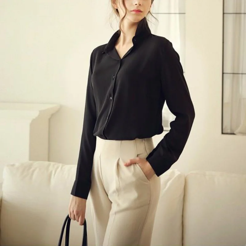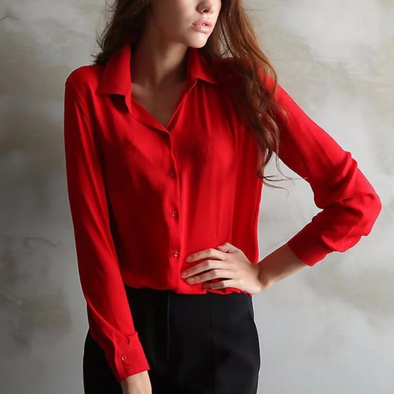 Affordable Fashion Women Long Sleeve Loose Chiffon Shirt Lady Casual Blouse Shirt Tops 5 Solid Color Women Clo
