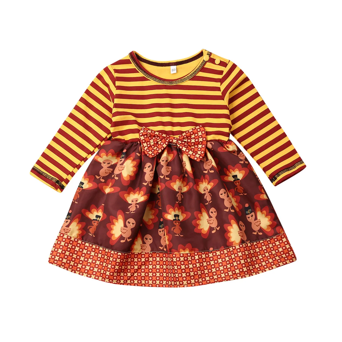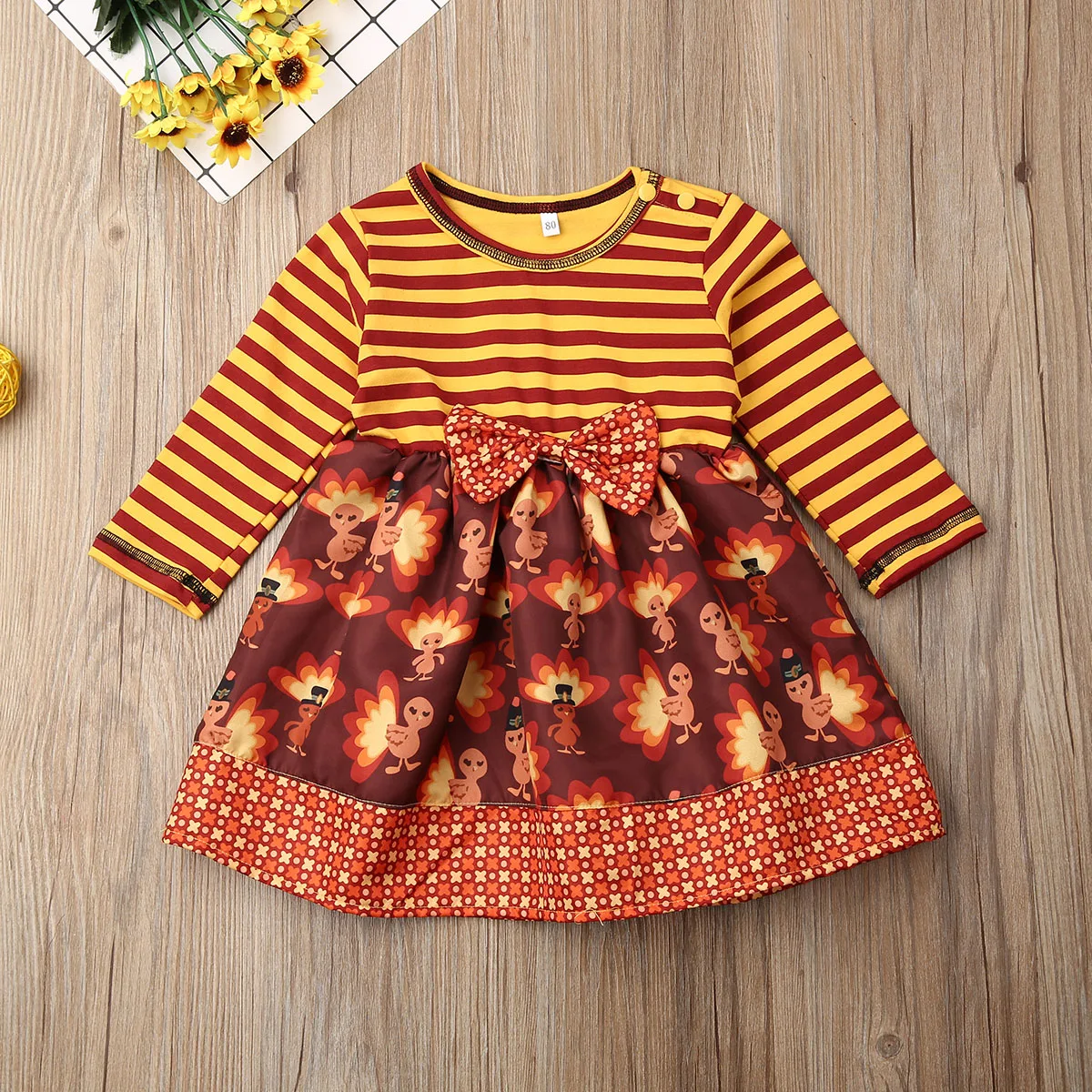 » Affordable New 2019 Autumn Newborn Baby Girls Kid Thanksgiving Striped Long Sleeve Tops Turkey Tutu Dress High