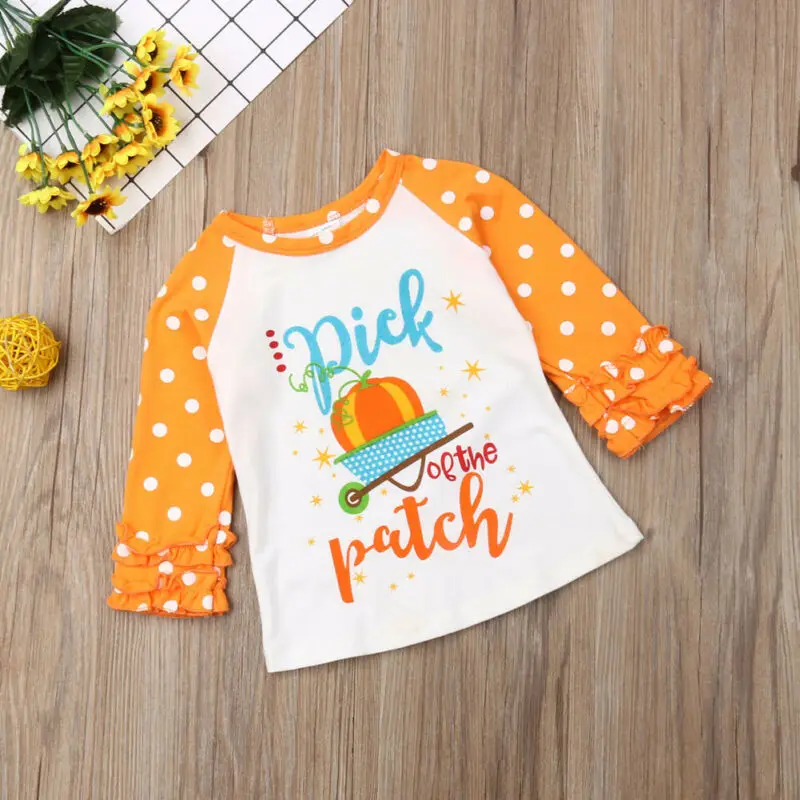 Great buy Halloween Infant Baby Girls Ruffle Polka Dot Long Sleeve Pumpkin Print Ruffle Tops T shirt Clothes