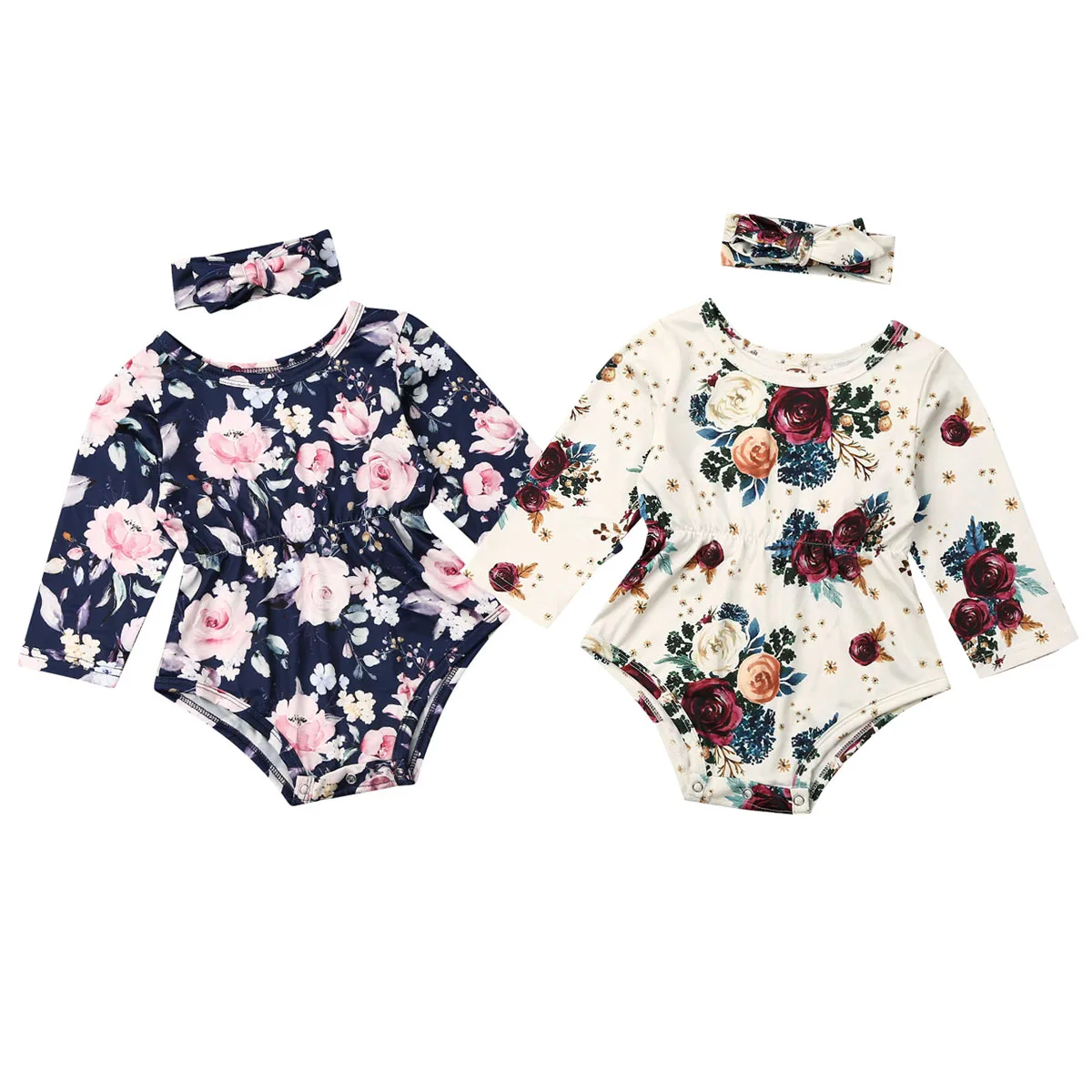 » Deals 0-24M Summer Newborn Baby Girl Floral Bodysuit Jumpsuit Headband Elegant Long Sleeve Cotton Body To