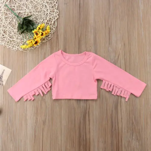 Deals Toddler Kids Baby Girl Clothes Autumn Pure Pink Long Sleeve Tops Fringe Tassel Tops Clothing Girls