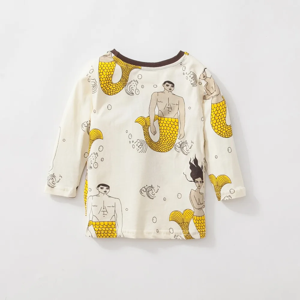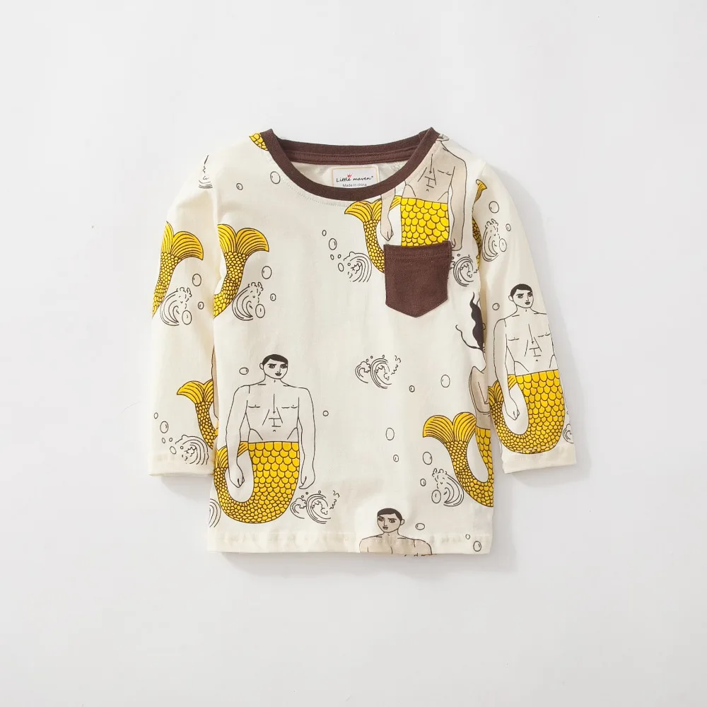 On sale Brand 2018 Long Sleeve Autumn SpringT shirt For baby kids boys girls t shirt Mermaid cartoon t-shir