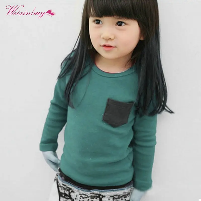 How to buy WEIXINBUY Unisex Kids Boy Girl Long Sleeve Crewneck T-shirt Pocket Deco Shirt Top Clothes L07