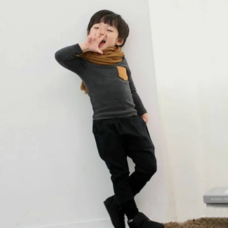 Pre-owned WEIXINBUY Unisex Kids Boy Girl Long Sleeve Crewneck T-shirt Pocket Deco Shirt Top Clothes L07