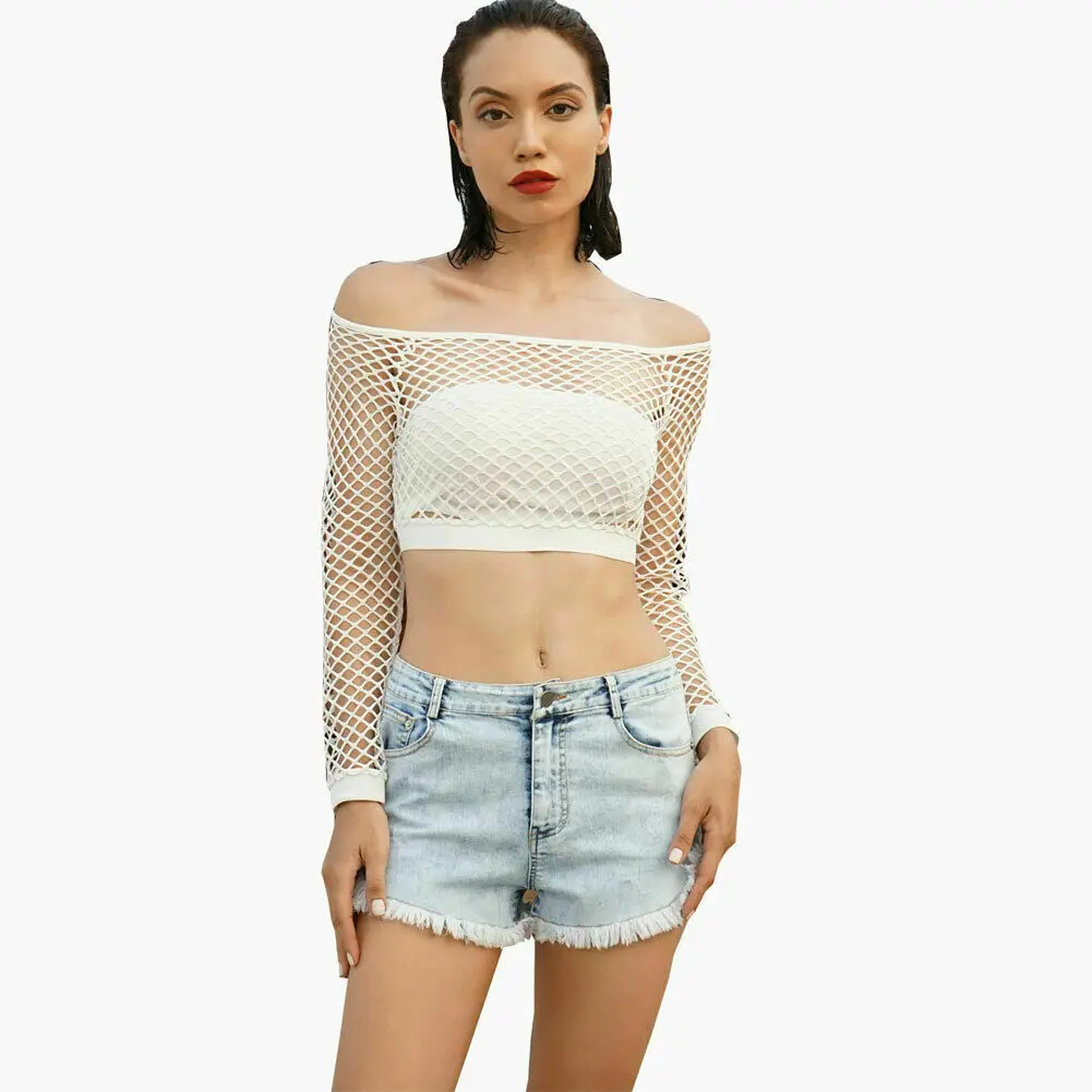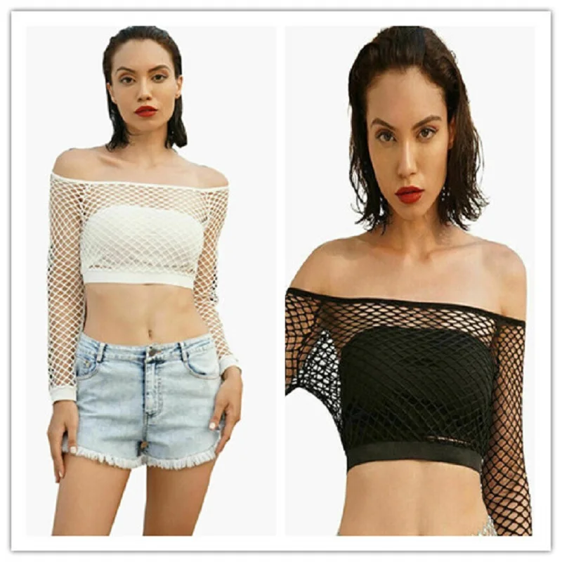Offer New Women Girls Fashion Casual Chic Summer T Shirt Fishnet Long Sleeve Solid Off Shoulder T Shirt T