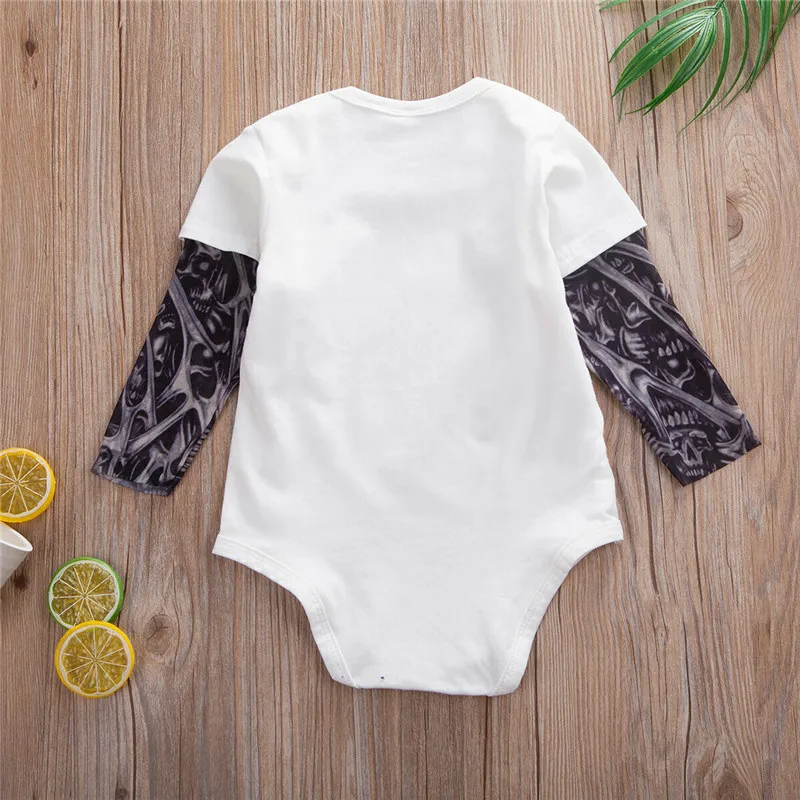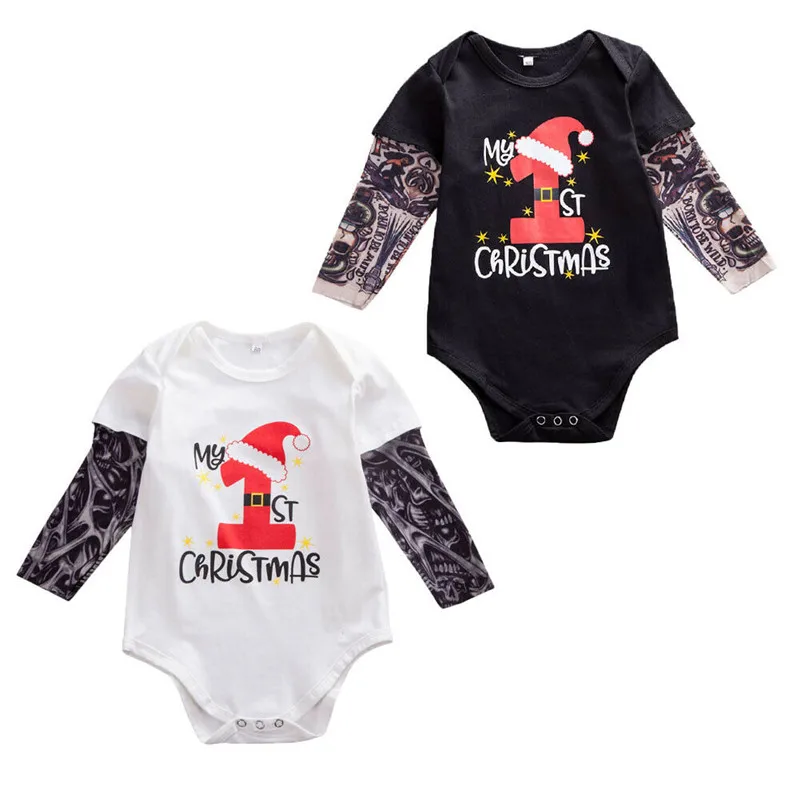 Discount Spring Autumn Newborn Baby Boy Girls Tattoo Print Long Sleeve Xmas Cotton Bodysuit Jumpsuit One-Pie