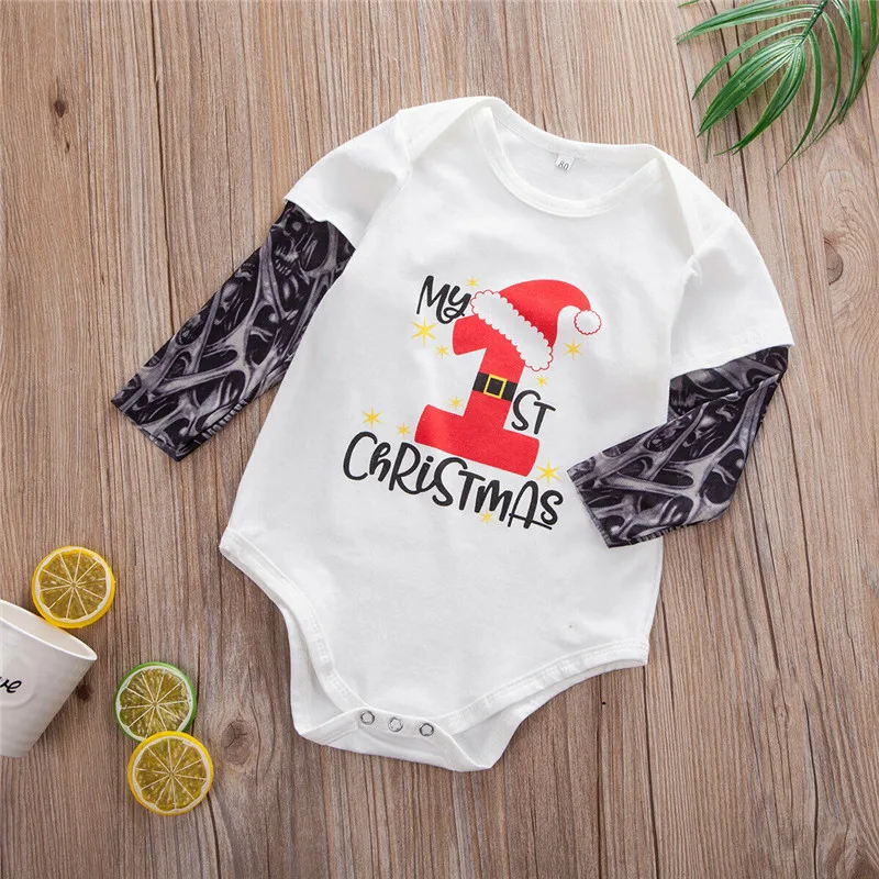 Pre-owned Spring Autumn Newborn Baby Boy Girls Tattoo Print Long Sleeve Xmas Cotton Bodysuit Jumpsuit One-Pie