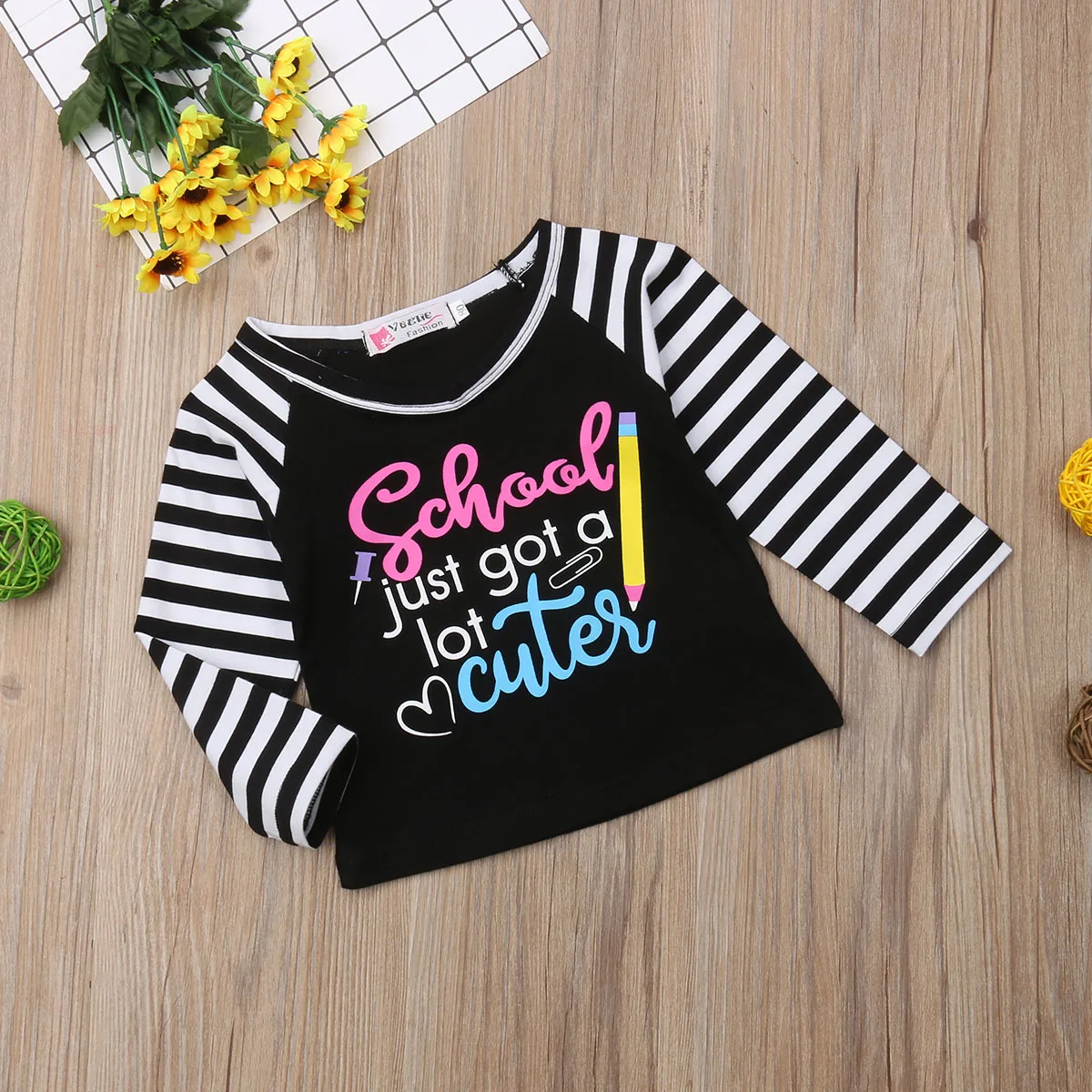 » Promo 2018 Newborn Infant Kid Baby Girl Boy Letter Striped T-shirt Tops Long Sleeves Clothes Cotton Casua
