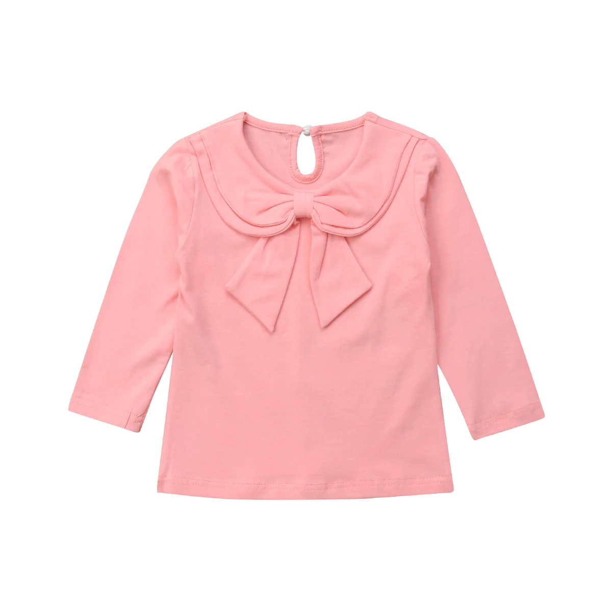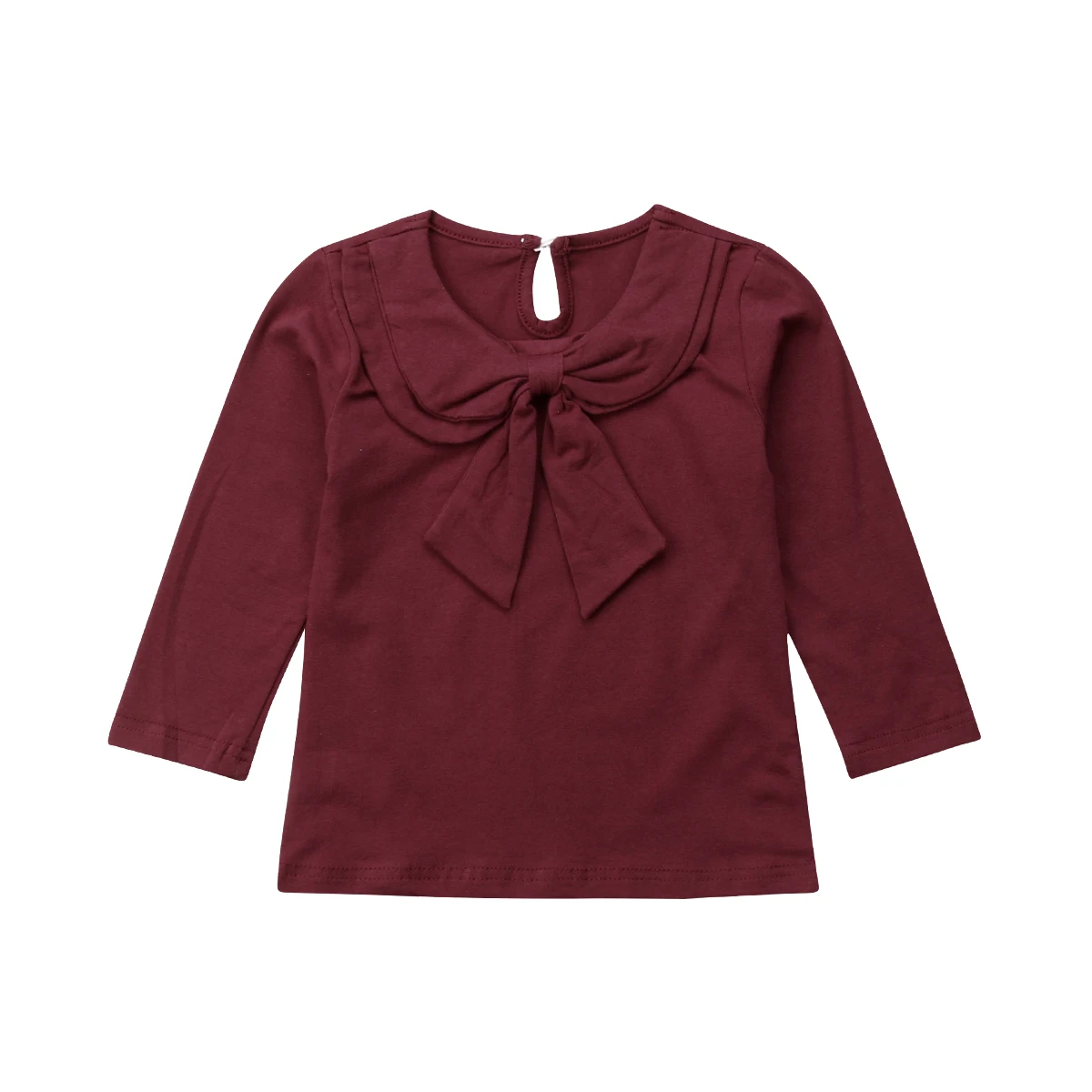 Order Toddler Kids Baby Girl T Shirt Long Sleeve Bow Collar Bowknot Cotton Bottoming T-shirt Tops Clothes