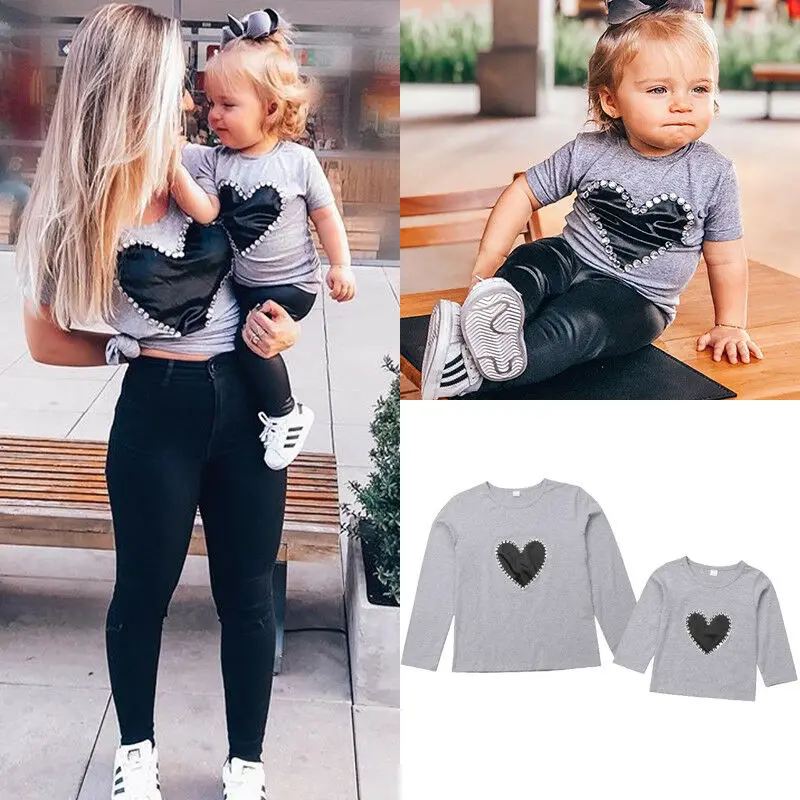 » Voucher Family Matching Clothes Mommy and Me Clothes Mother Daughter Lovely Heart Print Top Girl Long Sleev
