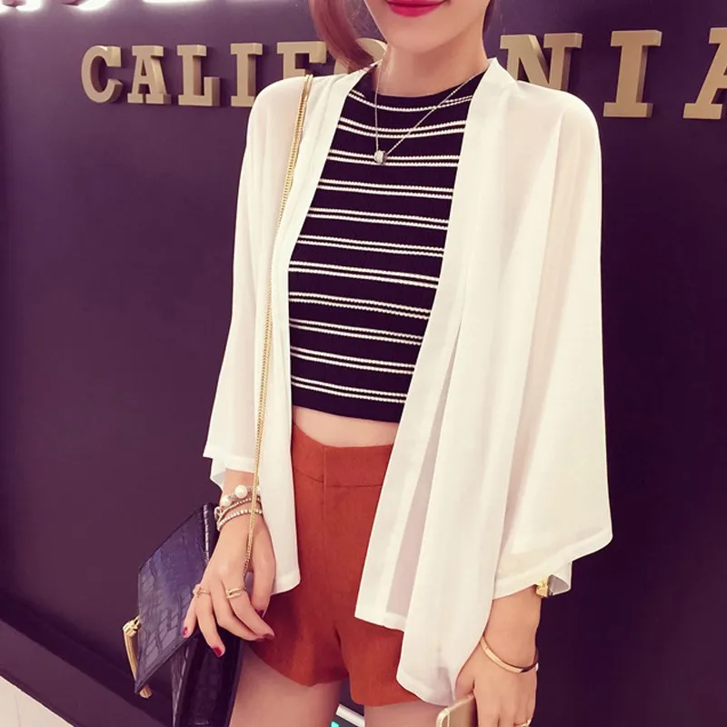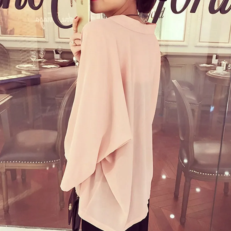 Cheap Long Sleeve Women Tops And Blouse Cardigan Chiffon Solid Blouse Ladies Shirt Loose Casual Blouses